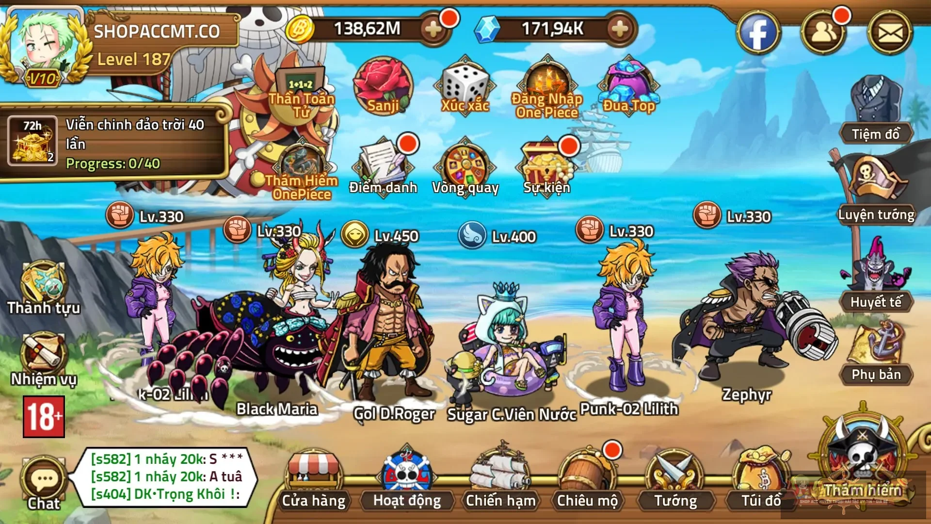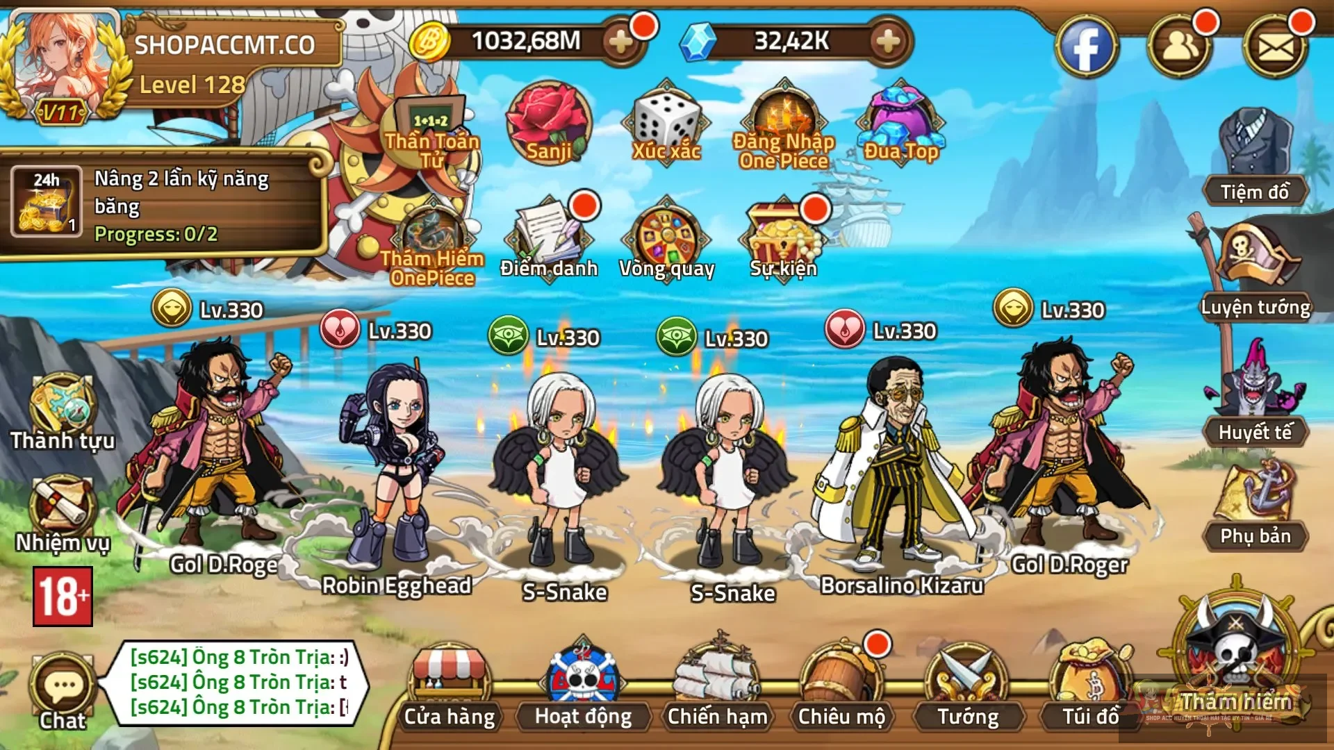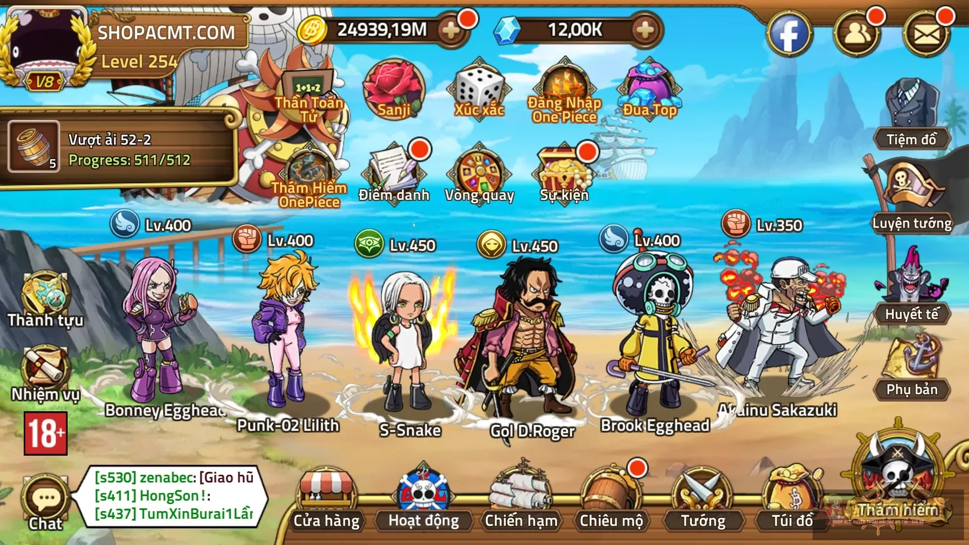 Tướng:Full meta, roger 450, luffy e5, sugar 400